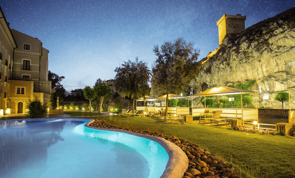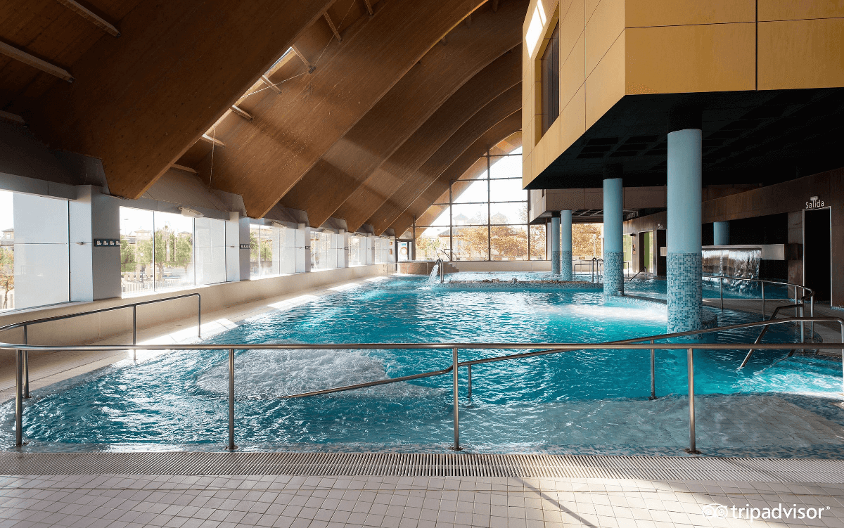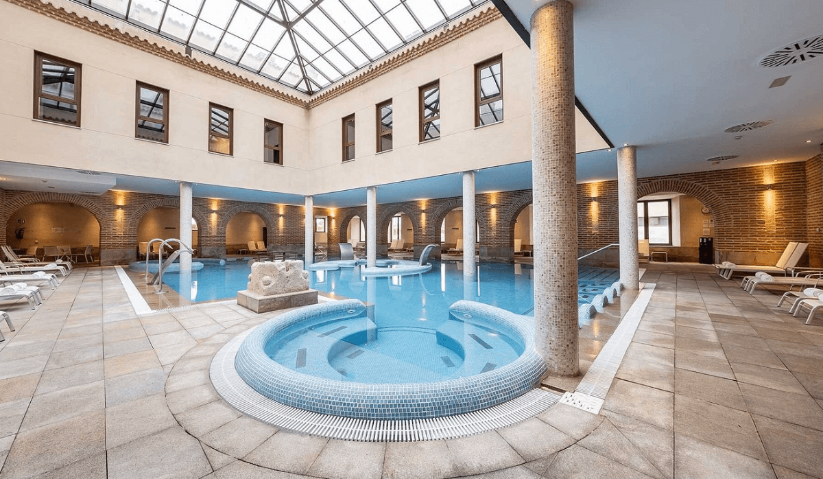 Imagina un balneario en el corazón de una antigua universidad; esto es lo que podrás descubrir en Burgo de Osma. Bajo el impresionante patio renacentista de la Universidad de Santa Catalina de Alejandría, se encuentran aguas termales convertidas en un magnífico balneario. Estas aguas, con propiedades terapéuticas recomendadas para tratamientos antiestrés y terapias de adelgazamiento, te sumergen en una experiencia única. El edificio, con su fachada plateresca y patio renacentista, es un lugar idílico para liberarse del estrés si se visita la provincia de Soria, además de ser el primer hotel termal de la zona. La piscina termal cuenta con jacuzzis, camas de hidromasaje, chorros descontracturantes y más, ofreciendo un espacio de silencio y calma para recargarte de energía.