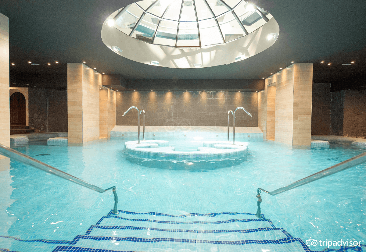 A solo 28 kilómetros de Santander, en Puente Viesgo, se encuentra el balneario que completa el podio de mejores espacios termales. Este complejo termal ofrece una experiencia integral que incluye alojamiento, exquisita gastronomía y tratamientos inverosímiles como la fangoterapia e innovadores rituales inspirados en paisajes árticos. El manantial brota a orillas del río Pas, en el Valle de Toranzo, rodeado por las majestuosas montañas del Parque Natural de Cabárceno. Toda esta estación termal conecta con el Gran Hotel, un alojamiento de decoración clásica que con alrededor de 135 habitaciones, el huésped se va a sentir como en casa. No lo pienses más, y vive una experiencia termal única en el corazón de Cantabria.