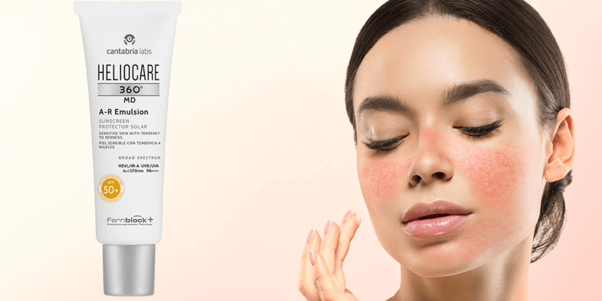Heliocare 360º MD A-R Emulsion SPF50+ es una solución fotoprotectora de Cantabria Labs cuya fórmula está combinada con otros ingredientes que protegen los factores desencadenantes de la aparición de rojeces en pieles sensibles, perfecto para este tipo de piel.