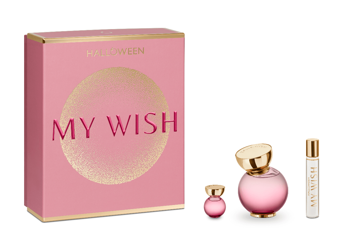 MY WISH es la representación de un deseo hecho aroma. Un Eau de Parfum floriental-afrutado que combina la dulzura jugosa de la cereza crujiente con la feminidad de la gardenia, envuelta en notas de caramelo, pachulí y musgo. Una estela mágica, aterciopelada y luminosa, que transforma cada momento en un recuerdo encantador. El set incluye: Vaporizador 100 ml + Travel Spray 7 ml + Miniatura 4,5 ml