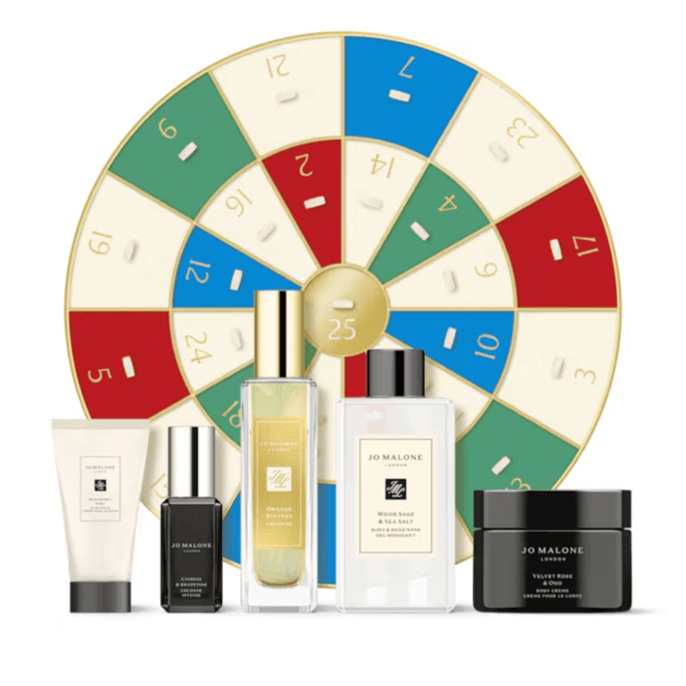 En una original caja redonda que recuerda a una diana, la firma londinense Jo Malone también cuenta con un Calendario de Adviento con 25 sorpresas en su interior. Al abrir cada uno de sus cajones dorados encontrarás desde los favoritos aromas de la temporada de la firma, hasta sus clásicos más atemporales. Desde velas perfumadas hasta productos para el cuidado diario. La mayoría en tamaño miniatura para llevar de viaje, pero también alguna de tamaño normal.