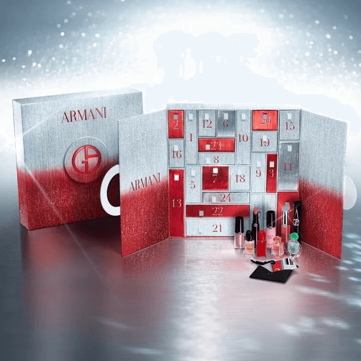 El Calendario de Adviento de Armani para esta Navidad se ha vestido de destellos, desvelando un degradado rojo y plateado que te encantará. En su interior, 24 sorpresas de la firma Armani Beauty, entre fragancias, maquillajes y productos de cuidado de la piel. Ocho de ellas de tamaño completo, 15 miniaturas y un regalo sorpresa.