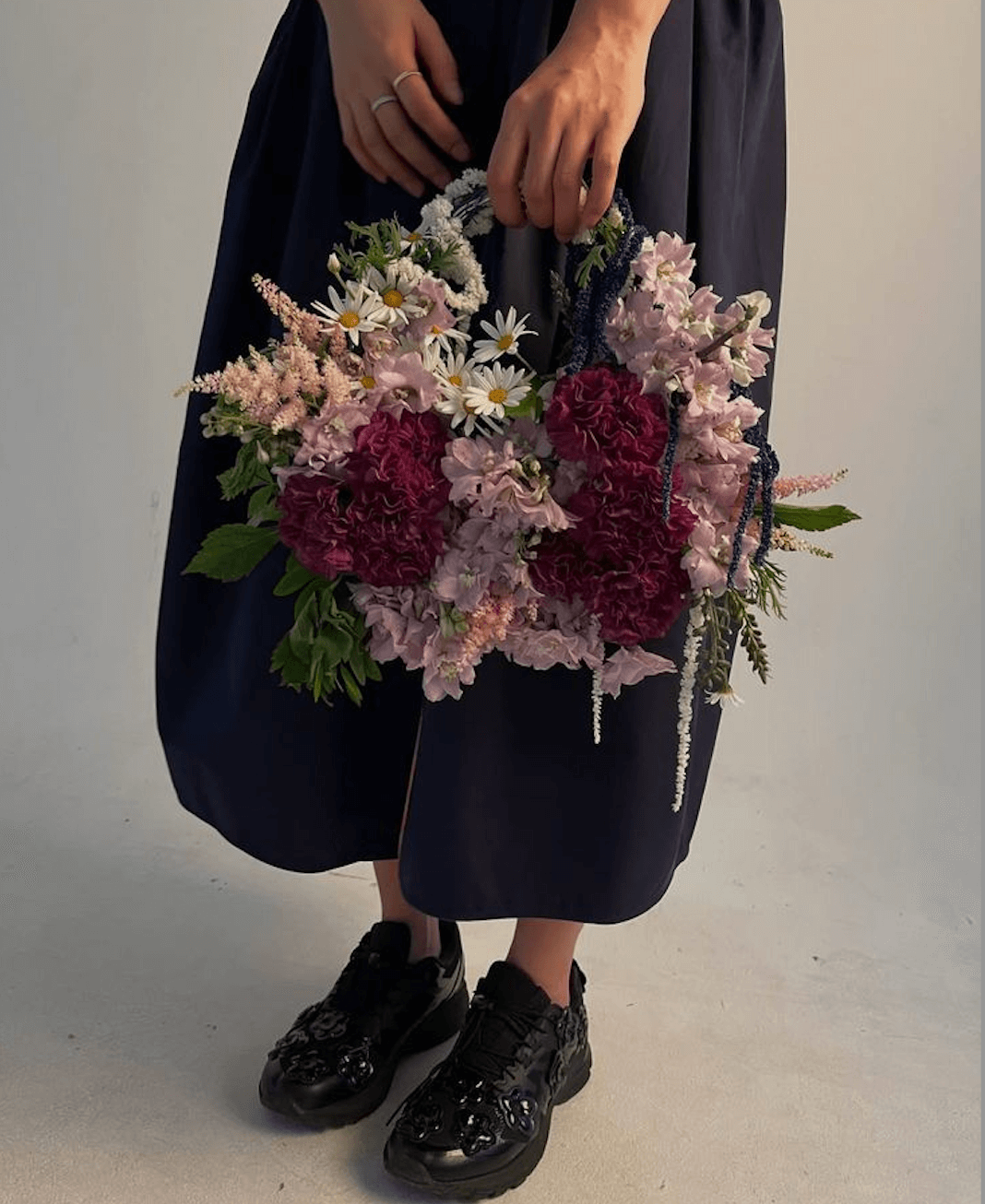 Incluso los bolsos florales, tendencia viral en redes, ganan terreno como alternativa al clásico ramo. La clave está en que cada arreglo cuente algo: que sea una extensión de la historia y del carácter de quien lo lleva.