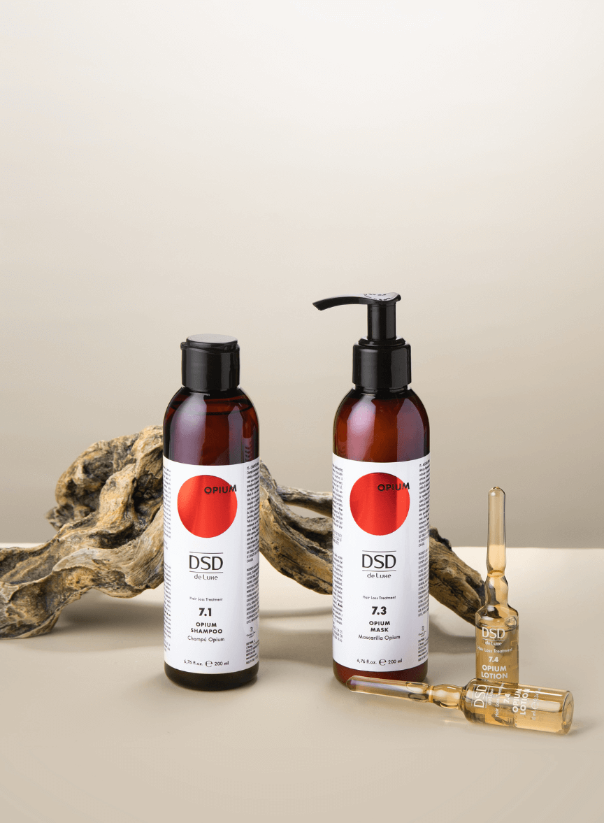 Su alta concentración de activos ayuda a prolongar la fase de crecimiento del cabello. Especial para la caída estacional que debilita el cabello y aumenta su caída. El protocolo aconseja el Champú Opium, que previene la caída, fortalece el cabello y estimula su crecimiento. A aporta volumen al cabello fino. La mascarilla regenera y protege la fibra capilar, hidrata y aporta brillo y suavidad. Y la loción en ampollas aporta más densidad y fuerza desde la raíz, y salud al cuero cabelludo.