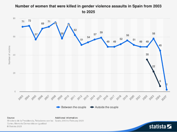 Los datos del Ministerio de la Presidencia muestran la violencia de género como un fenómeno estructural en el país. Desde 2003, cada año han muerto decenas de mujeres a manos de sus parejas o exparejas. Entre 2003 y 2013, las cifras anuales se situaban por encima de los 70 asesinatos. Desde entonces, la cifra se redujo levemente, registrando entre 50 y 60 feminicidios al año.