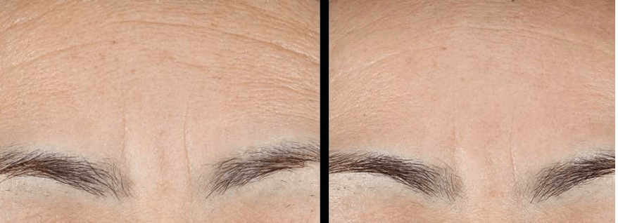 Las imágenes de antes y después mostraron una mejoría media notable en las arrugas de la frente.