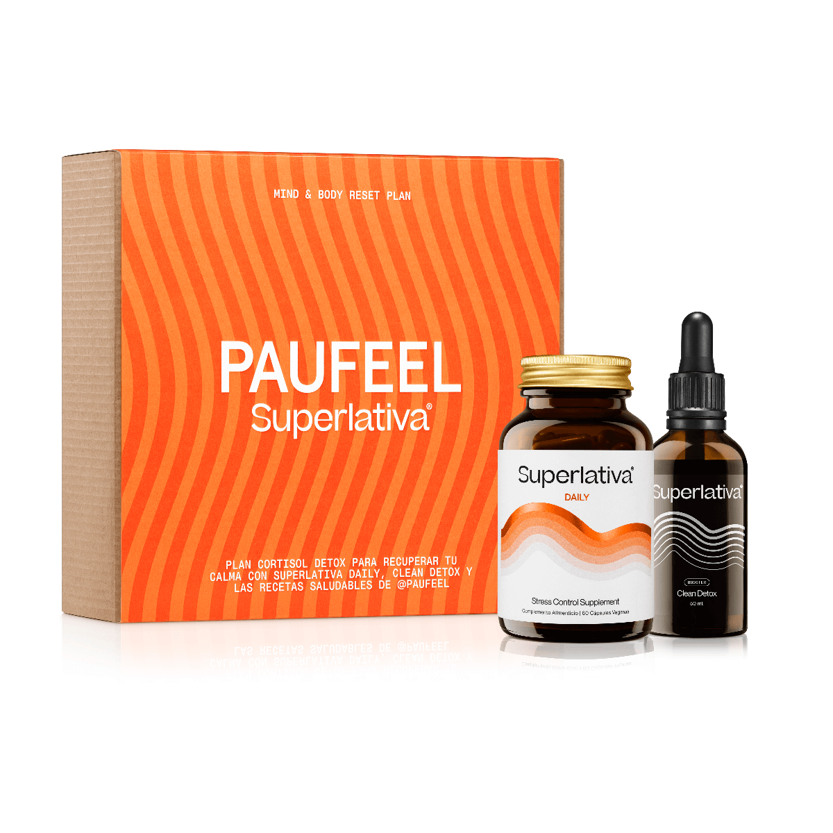 Por un lado, encontrarás las recetas de Paufeel, que están diseñadas para favorecer digestiones más ligeras y evitar la inflamación, mientras que, por otro lado, están los suplementos de Superlativa, que ayudan a equilibrar el organismo. Clean Détox impulsa los mecanismos naturales de depuración y detoxificación para reducir la inflamación y la retención de líquidos, y Superlativa Daily ayuda a regular el cortisol y el estrés del día a día, promoviendo un descanso más reparador y una sensación sostenida de calma, claridad y energía.