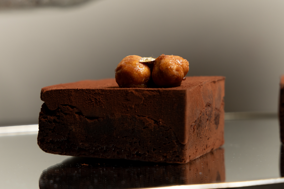 El brownie negro con avellanas de Papagena combina un chocolate intenso y húmedo con el crujiente natural de las avellanas, creando un contraste delicioso en cada cucharada. Perfecto para disfrutar solo o acompañado de un café, una opción elegante y golosa para celebrar este día.