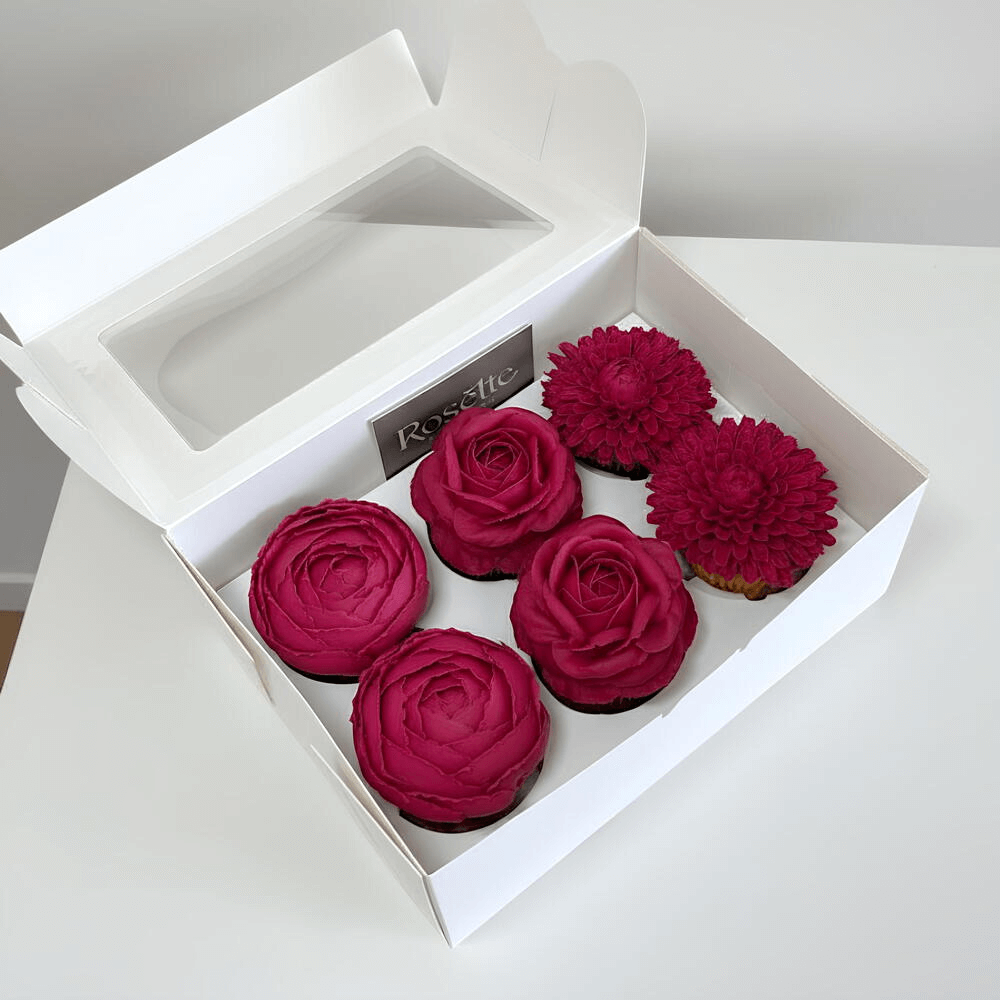 Cupcakes en forma de rosa: Cupcakes decorados con motivos románticos, perfectos para sorprender a la pareja con un detalle dulce.