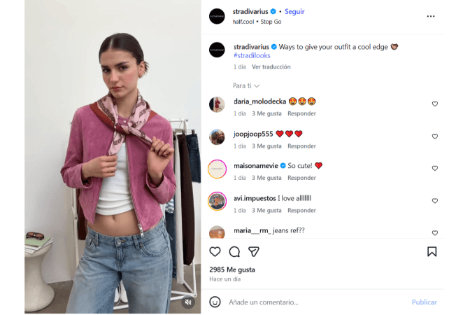 En esta misma red social, Stradivarius enseña cómo en sencillos pasos se puede llevar puesto este complemento de moda: anudado al cuello en su versión triangular, colgado del bolso, como refuerzo de un moño, rodeando la cintura o, en su forma tradicional, rodeando el cuello y terminando con una lazada.