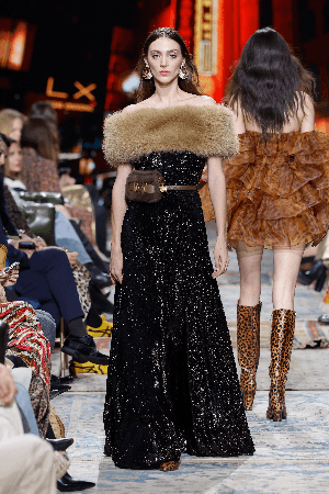 La riqueza en tejidos y texturas adquiere un papel protagonista. Lentejuelas, plumas, vinilados, tejidos satinados y piezas de pelo se mezclan con estampados emblemáticos de la firma para crear un juego constante de contrastes entre lo sofisticado y lo desenfadado. Aparecen así vestidos joya cubiertos de lentejuelas con capas, maxi vestidos con plumas, chaquetas viniladas o chalecos y cuellos de pelo que aportan un carácter urbano y contemporáneo a los looks.