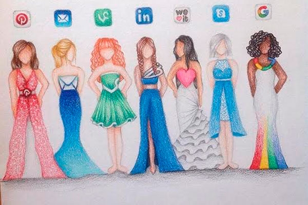 Las usamos cada día y reconoceríamos sus logos a distancia pero parece que pocos han querido sacar rentabilidad a marcas como Facebook, Twitter, Instagram… y crear nuevas tendencias para las pasarelas y los eventos multitudinarios. Ahora, varios jóvenes han diseñado vestidos inspirándose en sus colores y formas.